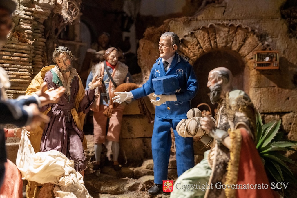 È uno dei personaggi di un Presepe particolare, allestito nella chiesa di San Pellegrino in Vaticano. Vi sono rappresentate tutte le componenti della Direzione dei Servizi di Sicurezza e Protezione Civile: dai Gendarmi ai Vigili del Fuoco in assetto operativo, al personale di servizio, tutti convergono con lo sguardo verso la Natività, uniti in una comune dimensione di vigilanza, fede e servizio.