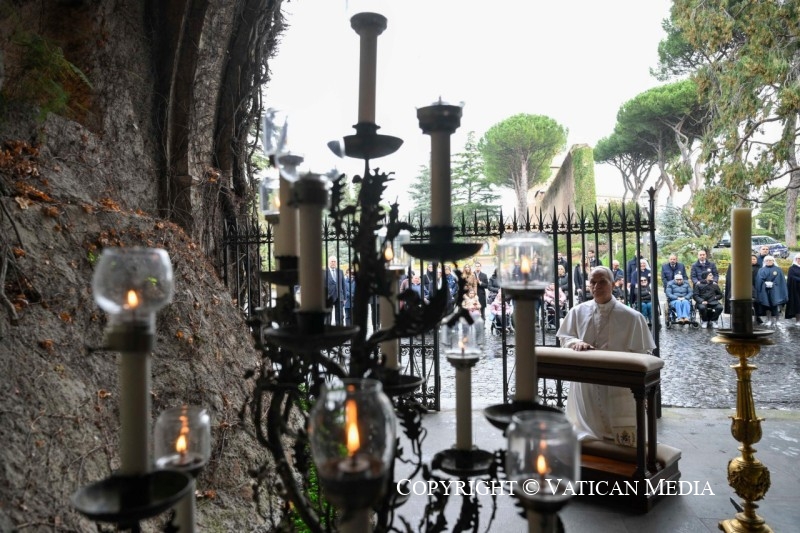 “Oggi in questa giornata dedicata ai malati vogliamo pregare in comunione con tutti coloro che soffrono nel mondo. Preghiamo per voi. Sinceramente vi ringrazio per aver fatto questo sforzo di venire e accompagnarci in questo momento di preghiera, qui davanti a nostra madre, Maria, nella sua memoria liturgica, Nostra Signora di Lourdes”. Così Papa Leone XIV, davanti alla Grotta di Lourdes nei Giardini Vaticani, mercoledì mattina, 11 febbraio, dopo l’Udienza Generale.