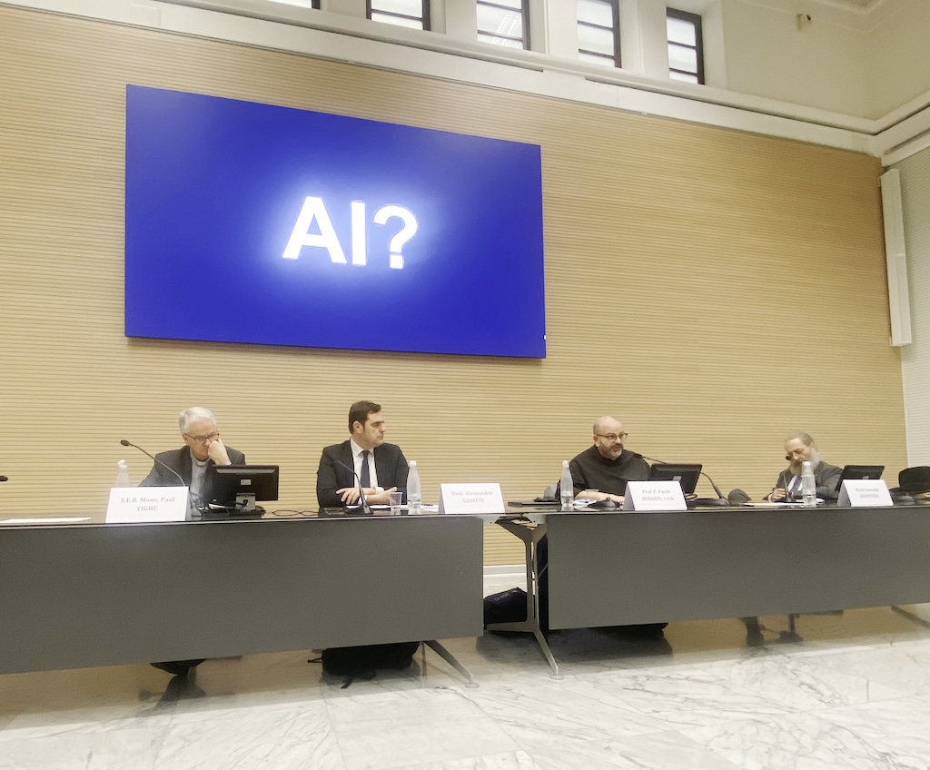 Il primo intervento è stato affidato al Vescovo Monsignor Paul Tighe, Segretario del Dicastero per la Cultura e l’Educazione, il quale ha esposto con lucidità quale dovrebbe essere l’approccio nei confronti di una tecnologia così potente, dirompente e importante per l’essere umano.
