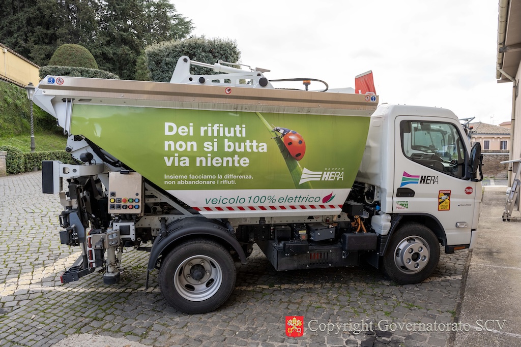 L’automezzo, con una vasca portarifiuti della capienza di 3.500 kg, per 60 chilometri di autonomia, porterà a un’azione di miglioramento in materia di gestione dei rifiuti, e innalzerà gli standard di sostenibilità della Città del Vaticano.