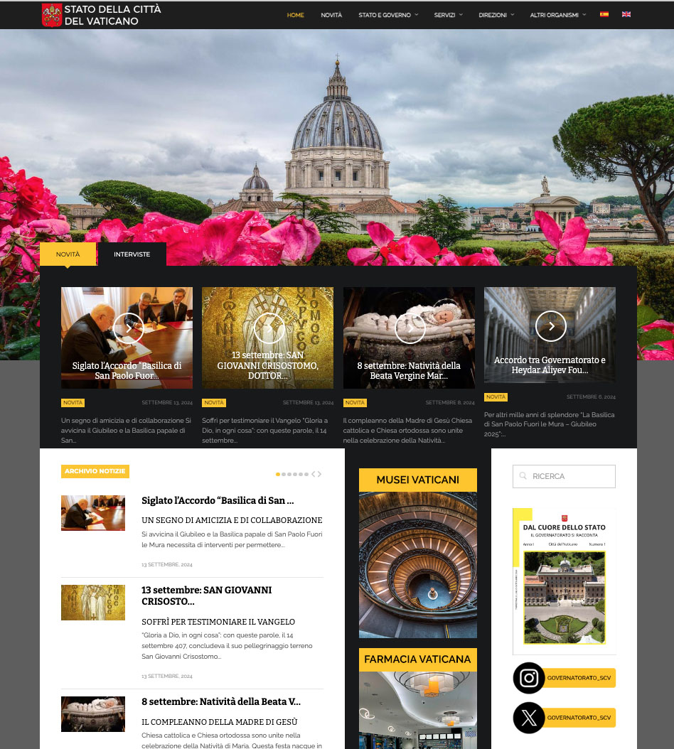 Rientrano in questo contesto anche la creazione dei profili istituzionali Governatorato_SCV sui social network X (Twitter) e Instagram.