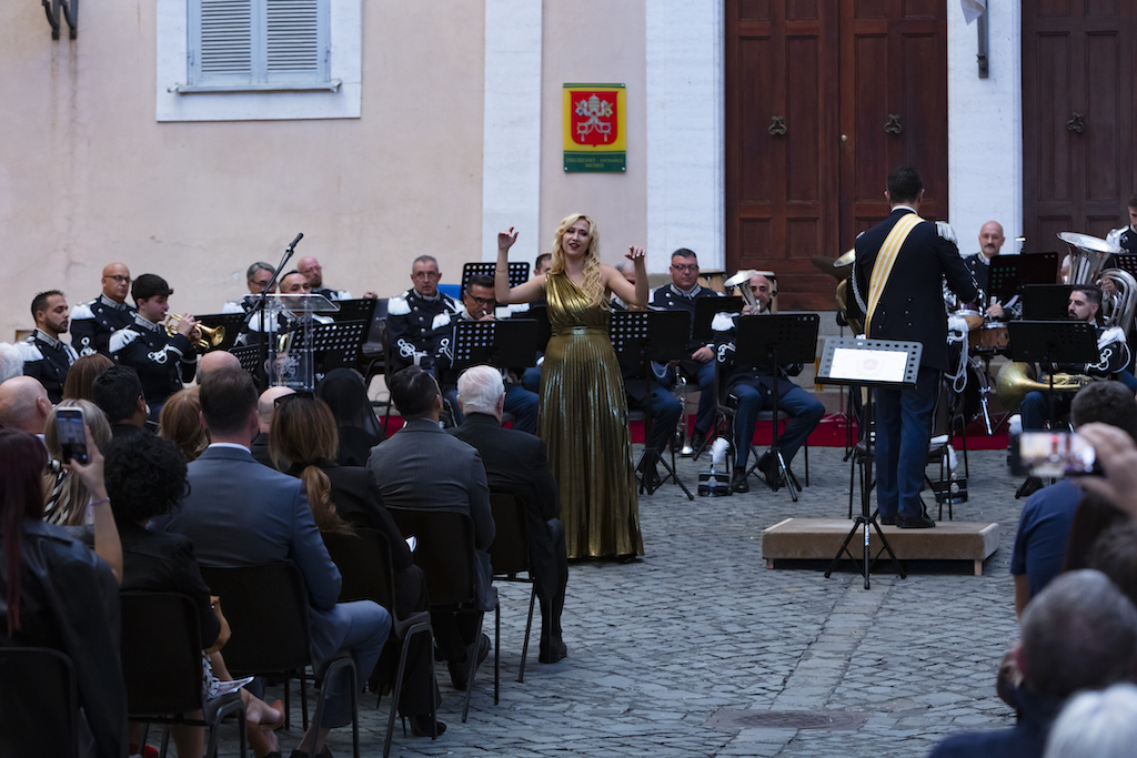 Si è trattato di un momento speciale per celebrare il Patrono della Gendarmeria, San Michele Arcangelo, in una cornice splendida e unica come quella delle Ville Pontificie. L’ appuntamento è stato promosso dalla Direzione dei Musei e dei Beni Culturali e dalla Direzione delle Ville Pontificie. Quello svoltosi a Castel Gandolfo è stato il decimo concerto, l’unico fuori sede, in programma per il 2024, nell’ambito dell’iniziativa “Musica ai Musei”, con le aperture serali del venerdì dei Musei Vaticani.