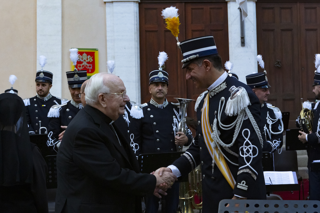Saluto il Maestro Stefano Iannilli, Direttore della Banda musicale della Gendarmeria, e tutti voi componenti della Banda,