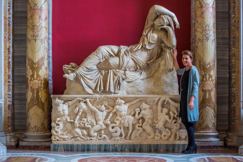È difficile a dirsi, perché in questi anni ho imparato a conoscere più approfonditamente le collezioni dei Musei, e ognuna ha il suo particolare aspetto che mi interessa. Ognuna mi attira in modo diverso. Prima non mi occupavo di Egittologia ed è tutto un mondo che non conoscevo, perché ho studiato Etruscologia e Archeologia, ma mai direttamente mi sono occupata dell’Egitto, con cronologie e dinastie dei faraoni. D’altra parte, nei Musei ci sono dei luoghi e delle opere particolari che toccano il mio cuore. Uno è senz’altro la terrazza del Belvedere. Un posto concepito dal Bramante e realizzato nel XVI secolo da Pirro Ligorio sul nicchione della Pigna. L’abbiamo restaurata proprio in questi ultimi anni. Ci si può arrivare anche in ascensore oltre che tramite una scala. In quel luogo, si fanno piccoli incontri e ricevimenti con ospiti illustri, perché è chiusa al pubblico. Dalla terrazza, si dominano i sette chilometri dei Musei e si nota il rapporto tra essi e lo Stato più piccolo del mondo. Su 44 ettari di superficie, della quale la metà sono Giardini e boschi, la parte di costruito è più o meno la metà. Si scorge anche il rapporto dello Stato con la città di Roma, con un panorama bellissimo da un orizzonte all’altro fino ai Castelli romani.