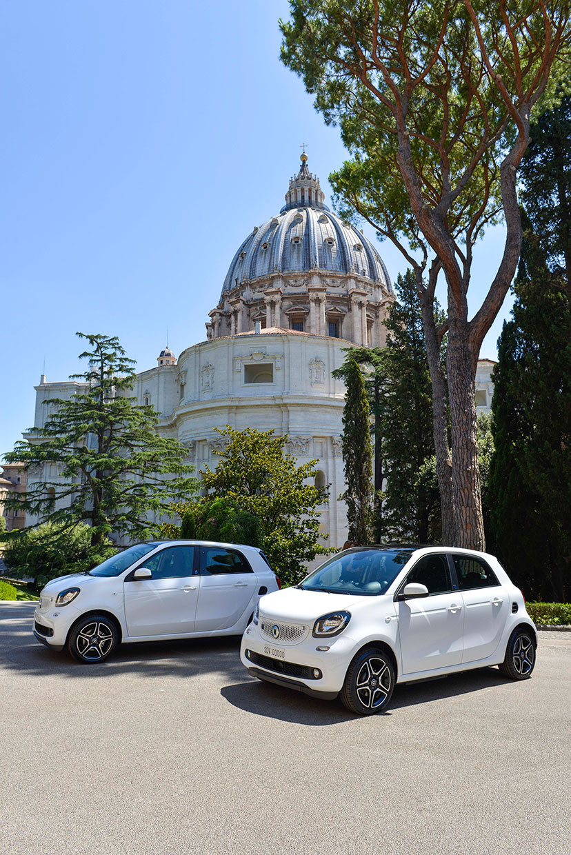 Due smart EQ forfour, entrano a far parte della flotta in uso al Governatorato dello Stato della Città del Vaticano.