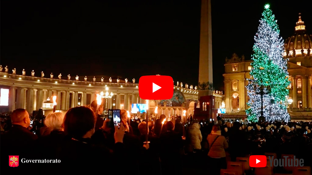 Nuovo video YouTube dedicato all’inaugurazione del presepe e dell’illuminazione dell’albero di Natale in Piazza San Pietro